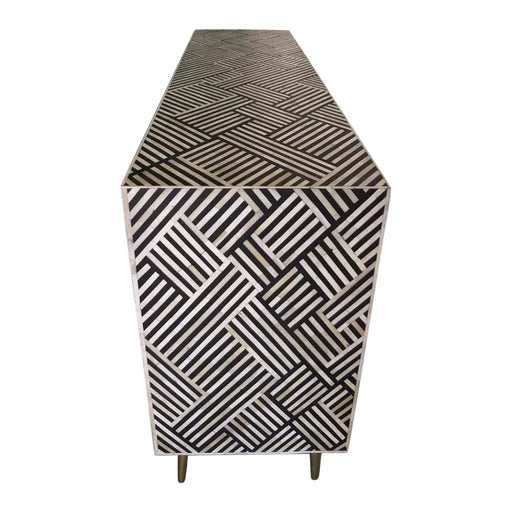 This spectacular black stripe bone inlay sideboard, one of Kraftor's top picks! This beautiful sideboard is large in size and is certainly a timeless investment that will add an everlasting elegance to your home or office.