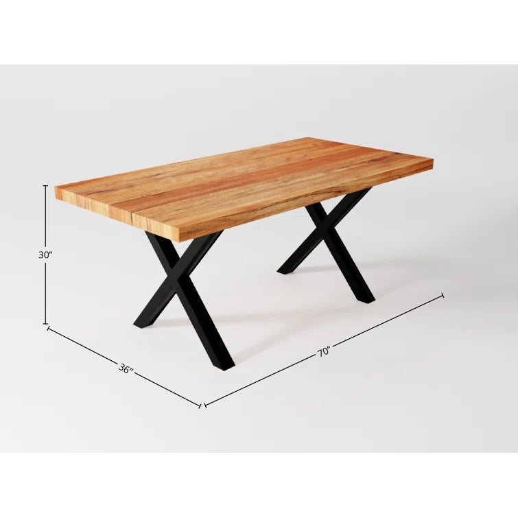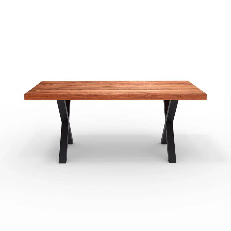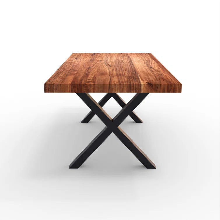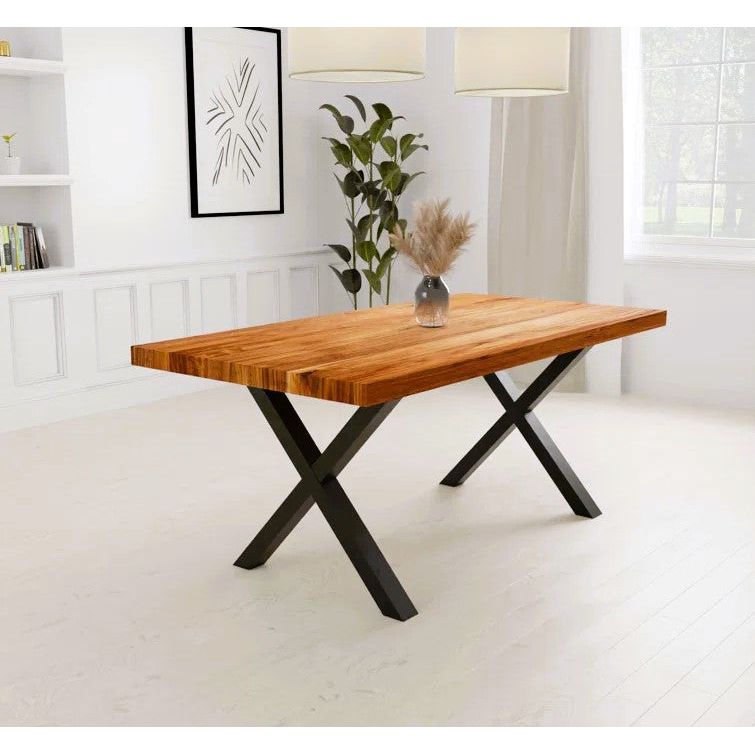 Introducing the Straight Edge Acacia Dining Table: Crafted from solid acacia wood, it combines natural beauty with modern design. The sleek black X legs provide stability, and its ample size makes gatherings unforgettable. With a high-quality lacquer finish, it's both durable and elegant, elevating your dining experience.